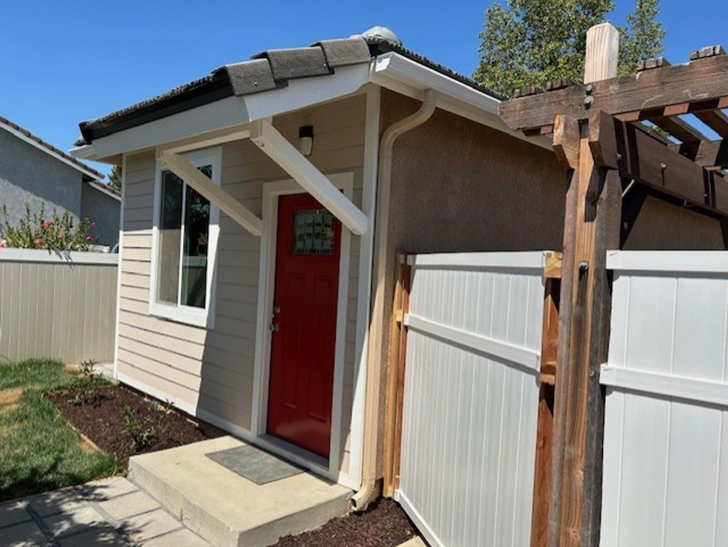 Brand new 1-bedroom ADU. New everything, central air, fridge, washer/dryer, Private entrance. Utilities electric & water will be tenant responsibility billed monthly. No pets.